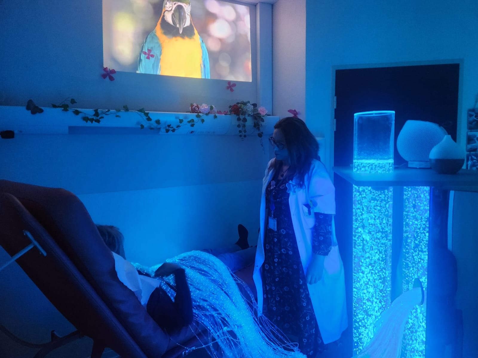 Grâce au soutien du Fonds de dotation des Hôpitaux Confluence, les services d’oncologie et de radiothérapie du CHIC ont pu s’équiper de colonnes à bulles mobiles et d’un chariot proposant des activités dites « snoezelen ».